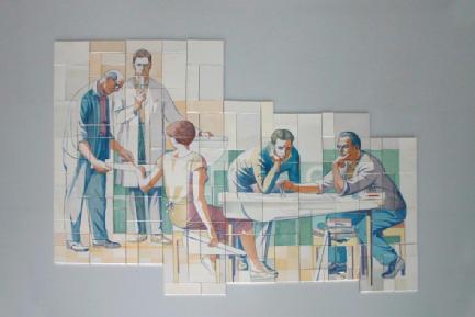Es wurde im Rahmen des Projektes aus der verfallenden Betriebskantine des ehemaligen VEB Verpackungsmaschinenbau Dresden geborgen. In Form einer Bodeninstallation mit Spiegel wird das Werk recycled und aktuelle Themenbezüge befragt.