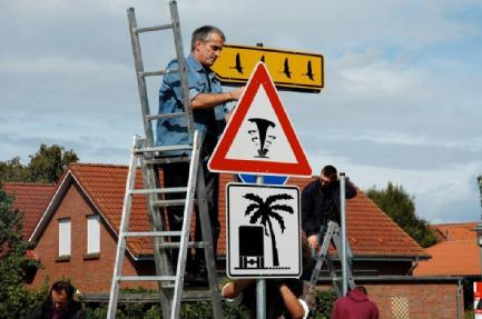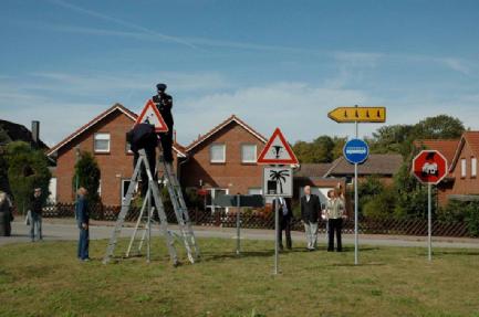 Als Ergebnis der Befragung entwickelte RG zwölf Piktogramme, welche die zukünftigen Herausforderungen und mögliche Handlungsfelder für Eigeninitiativen der Dorfbewohner versinnbildlichen. Als Leitsystem zum Neuen wurden die Piktogramme auf Verkehrsschildern zentral im Dorf aufgestellt. Es handelt sich um Zukunftsthemen wie Arbeitsplatzperspektiven, demographischer Wandel, alternative und unabhängige Energiekonzepte, Einzelhandel mit Produkten aus der Region sowie die kommunale Souveränität. Die Hinweis und Warnschilder sind als Agenda täglich für die Bewohner sichtbar.