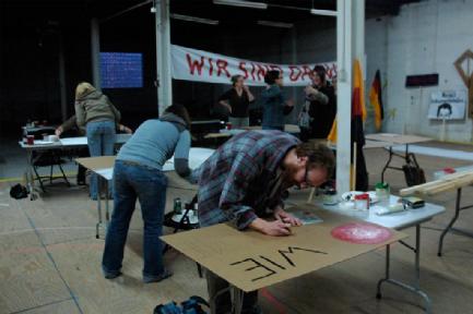 In preparation of the demonstration RG held a Banner Workshop. After an open discussion the participants were invited to take part in the making of the banners.