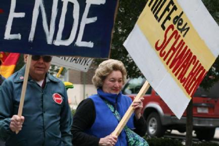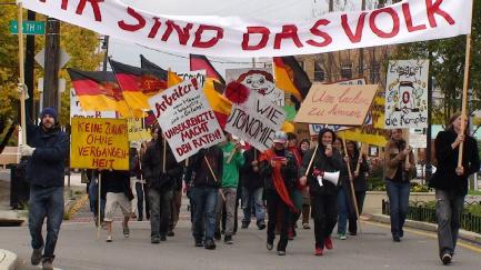 is a re-staging of the East German peaceful revolution. REINIGUNGSGESELLSCHAFT organized the performative event in the city center of Columbus Ohio. The participants reenacted one of the East German peaceful demonstrations from fall of 1989.
