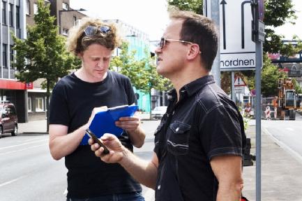 REINIGUNGSGESELLSCHAFT wirft die Frage auf, wie Städte und Verkehr der Zukunft aussehen werden. Werden wir angesichts hochgesteckter Klimaziele dem motorisierten Verkehr weiterhin das hohe Maß an öffentlichem Raum und öffentlicher Zeit zur Verfügung stellen können? Was wäre, wenn sich die Stadt Recklinghausen als Modellprojekt entschließen würde, jedes Jahr eine Sekunde der Signalzeit des Straßenverkehrs abziehen und zu den Fußgängerzeiten zu addieren? Wird sich in 23 Jahren das Verhältnis Fußgänger- und Straßenverkehr möglicherweise umgekehrt haben?